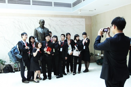 臺灣青年學生爭相在孫中山先生銅像前合影紀念