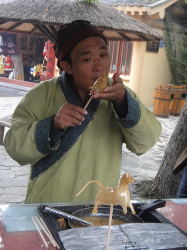 一大早,兩岸記者從鄭州出發趕赴開封,開封與洛陽、鄭州、安陽、西安、北京、南京、杭州并稱中國八大古都,在國內外享有盛名。北宋畫家張擇端繪制的巨幅畫卷《清明上河圖》,生動形象地描繪了東京開封城的繁華景象。今天的開封之行就首先來到了清明上河園。清明上河園以《清明上河圖》為藍本,集中再現原圖風物景觀的大型宋代民俗風情游樂園。很多來過開封的人都對清明上河園中糖人大師“神嘴”馬大吹印象深刻,這還包括了中國國民黨榮譽主席連戰、國民黨副主席林豐正、親民黨主席宋楚瑜等很多海峽兩岸知名人士。在接受本臺記者采訪時,馬大吹介紹說,他當時給時任國民黨主席的連戰吹了一個小猴,連戰看后贊不絕口,當即題字“巧奪天工”。馬大吹能在半分鐘之內吹出數十種動物,他希望將這一珍貴的中原非物質文化遺產傳播到世界各地。