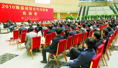 十月二十五日,二○一○豫臺經貿合作洽談會見面會在鄭州國際會展中心舉行。圖為見面會現場。郭宇攝