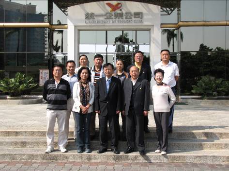 訪問團與臺灣統一企業集團公司總部的交流。11月20日,訪問團在高雄市前往阿里山的途中,參觀了統一企業集團公司總部。公司安排郭啟瑞投資總監、姚明興投資主辦、蘇姵榛投資主辦熱情接待。1967年7月1日,該公司成立,資本額3200萬臺幣,員工82人。企業經營理念是“三好一公道”即產品品質好、信譽好、服務好、價格公道。生產礦泉水的標準高于國際標準,理念是:尊重生命、彼此關懷、樂觀進取、親近自然。曾有壞人用針管注射毒品進去,用以敲詐公司。董事長下令將該批次礦泉水全部銷毀,員工曾痛心地提出自費購買也不行,公司損失2億臺幣,但也贏得了良好的信譽。我們曾經考察過的集團下屬夢時代購物廣場,是臺灣和東南亞地區最大的購物中心。2007年,集團營業額105億美元,員工數達7萬人。公司徽標由一只向西飛翔的鳥(象征企業理念中的“一公道”)、三個英文字母”p”變形(象征企業理念中的“三好”)和英文字母Uni-presidnt(象征企業走向國際)組成。特別難能可貴的是,那只鳥向西飛,東、南、西、北該可飛,為什么要向西飛呢?因為西邊是中國大陸!公司成立時生產的第一包統一方便面,40多年過去了(雖然已有部分變成粉末),至今還陳列于公司產品櫥窗里,她見證了統一企業的輝煌。“統一”商標的價值更是難以估量。