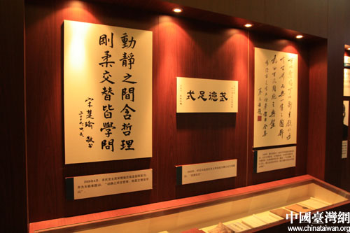 圖為太極拳祖祠展出連戰、宋楚瑜等人的墨寶(中國臺灣網 徐維彬 攝)
