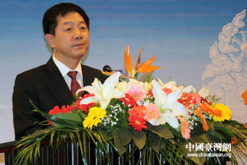 中共中央臺灣工作辦公室、國務(wù)院臺灣事務(wù)辦公室副主任葉克冬在“第七屆海峽兩岸中華傳統(tǒng)文化與現(xiàn)代化研討會暨首屆海峽兩岸醫(yī)學文化與醫(yī)學發(fā)展論壇”致辭。(中國臺灣網(wǎng) 董潔 攝)