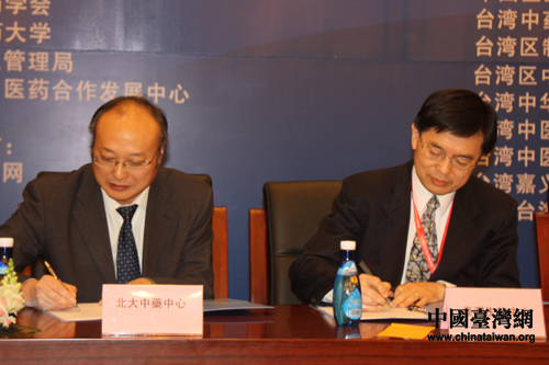 國家中醫藥管理局對臺港澳交流合作中心、臺灣工研院等單位就加強兩岸中醫藥合作交流達成多項協議,圖為簽約儀式現場(中國臺灣網 趙輝 攝)