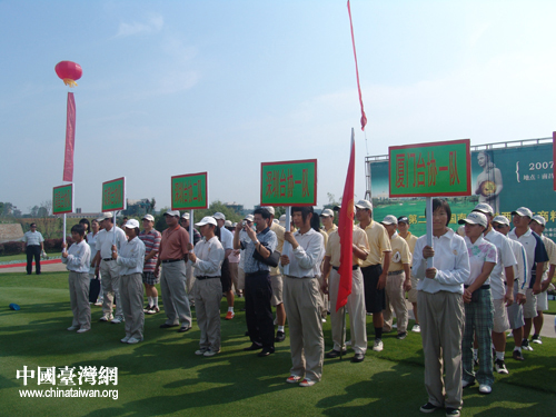 中國臺灣網9月1日南昌消息 昨日,作為“首屆中國南昌臺灣周活動”的一部分,“第二屆中國南昌海峽兩岸工商精英高爾夫球賽”在美麗的“銘雅歐洲城”隆重舉辦。全國各地臺協代表、臺灣知名企業代表等共8支球隊,60余位嘉賓共聚于此。南昌市常務副市長王詠、南昌市副市長盧曉健、南昌市臺協會長陳良鑒在開幕式上致辭。