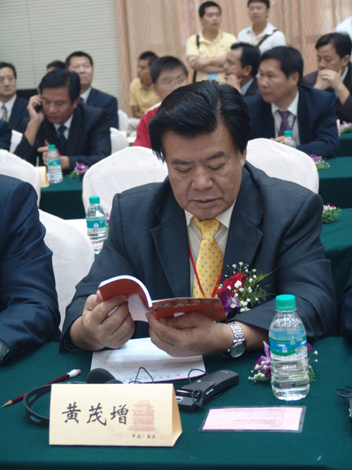 深圳僑商國際聯合會秘書長黃茂增在觀看推介資料 (攝影:邵填)