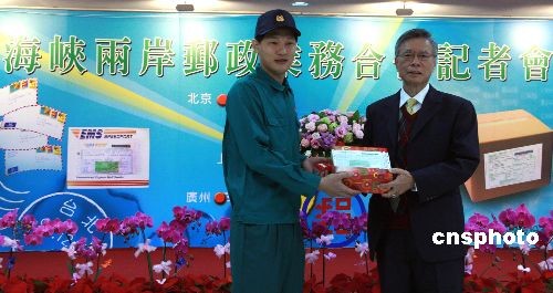 中新社臺北十二月十五日電 (記者 周兆軍 劉舒凌)臺灣“中華郵政公司”董事長吳民佑寄給中國郵政集團總經理劉安東的快捷郵件,十五日上午九時十五分許交到郵遞員手中,這是首封從臺灣寄往大陸的快捷郵件。