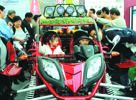 市民在參觀獲多項(xiàng)專(zhuān)利權(quán)的摩托車(chē)。新華社 圖