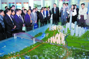 世界500強企業代表參觀江北嘴中央商務區沙盤。 記者 楊新宇 攝