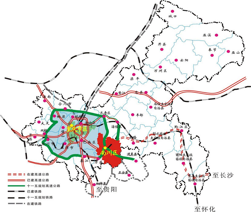 準(zhǔn)備建設(shè)的南川到萬盛的高速公路。建設(shè)完成后經(jīng)由綦江可直接連接出海大通道,到達北海、湛江等到南方沿海城市。