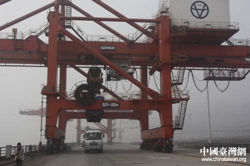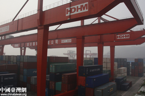 寸灘水港碼頭集裝箱正在裝卸(中國(guó)臺(tái)灣網(wǎng) 程軼文攝)