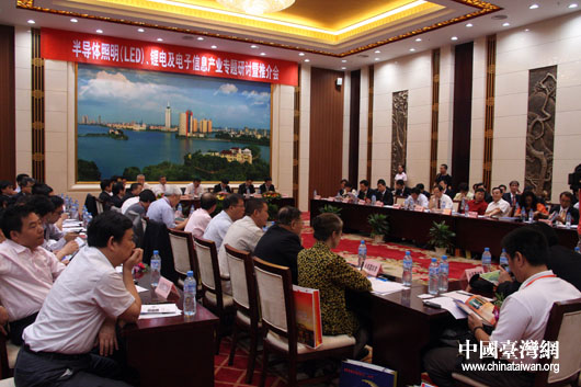 9月21日上午,由國務院臺辦和江西省政府共同主辦的“2009贛臺經貿合作研討會”在南昌開幕。開幕后,兩岸工商企業代表就有關投資合作項目及協議現場簽約,隨后,江西省七個專題的研討暨項目推介會同時展開。圖為半導體照明(LED)鋰電池及電子信息產業專題研討會暨推薦會現場。(中國臺灣網 鐘寶華 攝)
