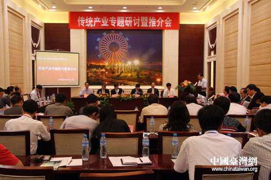 9月21日上午,由國務院臺辦和江西省政府共同主辦的“2009贛臺經貿合作研討會”在南昌開幕。開幕后,兩岸工商企業代表就有關投資合作項目及協議現場簽約,隨后,江西省七個專題的研討暨項目推介會同時展開。圖為傳統產業專題研討會暨推薦會現場。(中國臺灣網 鐘寶華 攝)