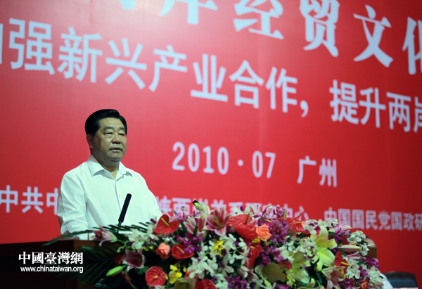 7月11日下午,第六屆兩岸經貿文化論壇在廣州閉幕。中共中央政治局常委、全國政協主席賈慶林在論壇閉幕式上講話。(中國臺灣網 鐘寶華 攝)