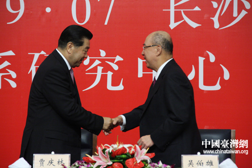 中共中央政治局常委、全國政協主席賈慶林與中國國民黨主席吳伯雄出席。中國臺灣網 鐘寶華 攝