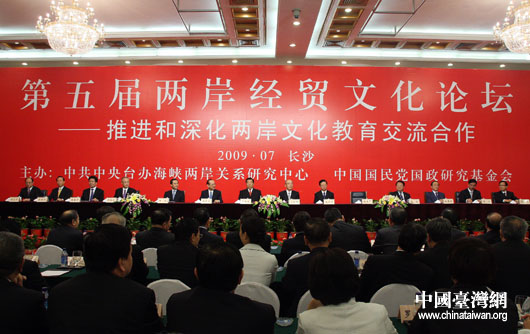 中國臺灣網7月12日長沙消息 今天下午3時,第五屆兩岸經貿文化論壇舉行閉幕式。閉幕式由中共中央臺辦主任王毅和中國國民黨副主席蔣孝嚴共同主持。