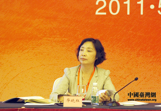 中國對(duì)外經(jīng)濟(jì)貿(mào)易大學(xué)教授華曉紅主持會(huì)議 (中國臺(tái)灣網(wǎng) 田云鵬 攝)