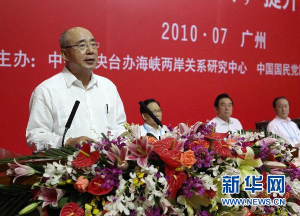 7月11日,中國國民黨榮譽主席吳伯雄出席兩岸經貿文化論壇閉幕式并講話。 當日,為期四天的第六屆兩岸經貿文化論壇在廣州落下帷幕。新華社記者馬占成攝