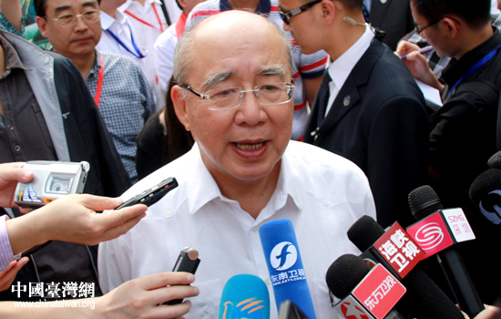 圖為吳伯雄在映秀鎮接受媒體采訪。(中國臺灣網 高斯斯 攝)