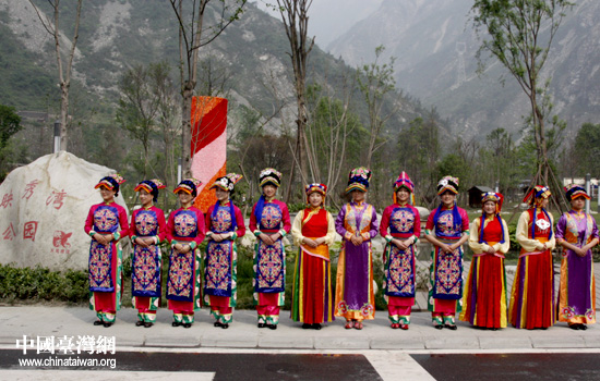 圖為身著民族盛裝的民眾歡迎吳伯雄一行。(中國臺灣網 高斯斯 攝)