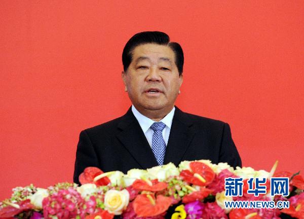 5月7日,第七屆兩岸經貿文化論壇在四川成都開幕。中共中央政治局常委、全國政協主席賈慶林在論壇上致辭。 新華社記者 饒愛民 攝