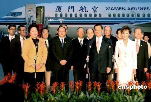 中國國民黨榮譽主席連戰一行于十七日下午五點五十五分抵達福州長樂國際機場,開始為期五天的“福建祖地行”行程。中共福建省委副書記、省政協主席梁綺萍等在機場迎接。連戰在機場發表了簡短講話,他引用了詩人王昌齡《送柴侍御》詩中“青山一道同云雨,明月何曾是兩鄉”表達他首次踏訪福建的心情。作者:鄭祚聲