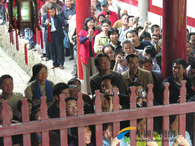 形容連戰(zhàn)的到來為鼓山帶來了巨大的轟動一點也不過份,人山人海的圍觀群眾,到處都有喊著“連主席好”的人群,到處都有翹首等著看連戰(zhàn)一行的民眾。這些民眾為了追逐連戰(zhàn)一行的步伐,跟原本就浩浩蕩蕩的記者隊伍一起四處“亂竄”,把鼓山擠得水泄不通,也讓記者的采訪工作更加困難。不過,從另一方面來說,正是有了他們的到來,才讓連戰(zhàn)的祖地行增添了更多的生動與感動。