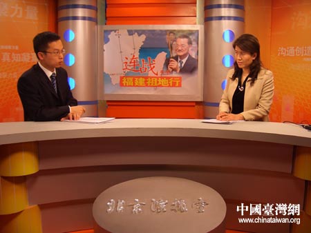 ——主持人:觀眾朋友您好,歡迎收看《新聞啟示錄》特別節目,我是李明。今天上午中國國民黨榮譽主席連戰先生攜全家首次回到了他的祖籍地福建省漳州市馬崎村社祭祖,下面我們先來看看當時的場面.中國國民黨榮譽主席連戰先生對福建的首次訪問,使得福建再一次成為海內外關注的焦點,實際上,在剛剛結束的首屆兩岸經貿論壇上,地處海峽西岸的福建已經成為備受輿論關注的焦點,會上宣布的大陸對臺15項政策舉施,與福建可以說是密切相關,其中更有五條是直接提到了福建,由此可見福建在兩岸交流合作中的重要地位和特殊作用,今天我們在演播室請到了中國社科院臺灣研究所的謝郁教授,謝教授您好。