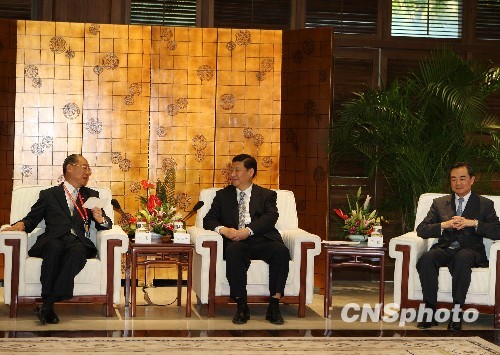 4月10日下午,國家副主席習(xí)近平在海南會見前來參加“博鰲亞洲論壇2010年年會”的臺灣兩岸共同市場基金會最高顧問錢復(fù),國臺辦主任王毅等陪同會見。 中新社發(fā) 任晨鳴 攝