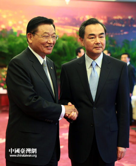 6月29日下午,中共中央臺辦、國務院臺辦主任王毅在重慶會見了海基會董事長江丙坤一行,雙方并座談。(中國臺灣網 鐘寶華 攝)