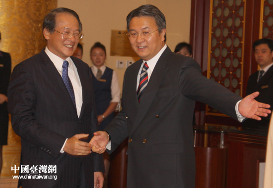 兩岸經濟合作框架協議第三次兩會專家工作商談13日上午在北京首都大酒店舉行。再度相會,兩岸老朋友握手言歡。(中國臺灣網 張弛 攝)