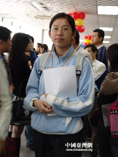 本次招聘會吸引了100余位來自臺灣的專業技術人才、在大陸讀書和工作的臺生、還有許多從廈門對岸的金門專程趕來參加招聘會的學生,如金門技術學院一次性就組織了60個畢業生前來參加招聘會。所以這也是臺灣專業人才及畢業生首次跨越海峽,來大陸人才市場進行的集體性求職活動。(徐麗麟) |