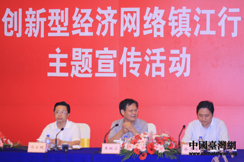 鎮江市副市長馮士超、市經濟和信息化委員會副主任徐志偉接受網媒記者采訪。(中國臺灣網 肖燕 攝)