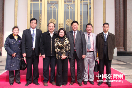 安徽省臺(tái)辦主任朱德祥(左三)、合肥市臺(tái)辦主任徐延安(右三)與國際青商會(huì)臺(tái)灣總會(huì)前總會(huì)長王玲嬌(中)合影留念。