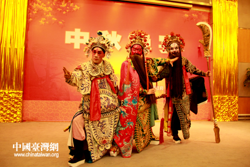 “2010海外臺商安徽行”黃山中秋晚宴上,由當地徽劇演員表演的傳統徽劇節目《水淹七軍》(中國臺灣網 董憲超 攝)