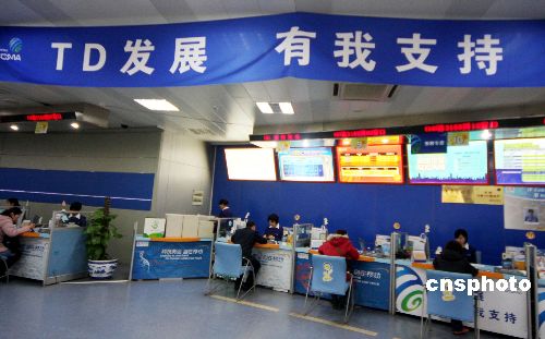 備受關(guān)注的3G(第三代移動通信)牌照將在1月7日發(fā)放,全球最大的移動電訊商——中移動將獲自主知識產(chǎn)權(quán)的TD-SCDMA(時分同步碼分多址)牌照,下午將給中國電信和新聯(lián)通分別發(fā)放CDMA2000和WCDMA(寬頻碼多分址)牌照。 中新社發(fā) 吳芒子 攝