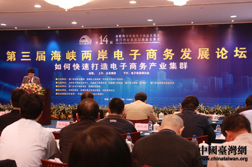以“如何快速打造電子商務(wù)產(chǎn)業(yè)集群”為主題的第三屆中國(廈門)海峽兩岸電子商務(wù)發(fā)展論壇今天召開。(中國臺灣網(wǎng) 肖燕 攝)