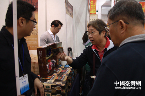臺灣一家咖啡企業本次交易情況也非常火爆,記者的采訪被前來購買咖啡的市民幾次打斷。(中國臺灣網 肖燕 攝)
