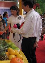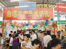 據(jù)悉,參展、參會(huì)的代表達(dá)500多人,其中臺(tái)商和外商超過340人!芭_(tái)灣展區(qū)”設(shè)有75個(gè)標(biāo)準(zhǔn)展位,有臺(tái)灣蓮霧、楊桃、芒果、哈密瓜、柳橙、番石榴、葡萄柚、木瓜和菠蘿等十多種臺(tái)灣的時(shí)鮮熱帶水果和400余種農(nóng)產(chǎn)品深加工制品參加展示展銷。參展的臺(tái)灣農(nóng)業(yè)團(tuán)體、農(nóng)業(yè)企業(yè)和大陸臺(tái)資農(nóng)業(yè)企業(yè)總數(shù)達(dá)到100多家,參展的臺(tái)灣深加工農(nóng)產(chǎn)品包括茶葉、水產(chǎn)品、飲料、蜜餞、果凍等20類100多種。