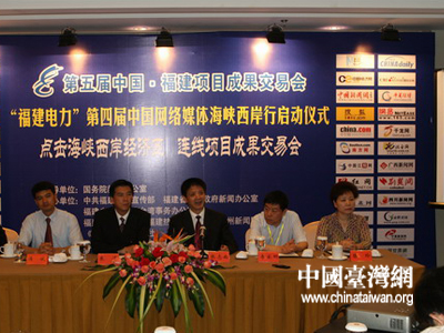 中國臺灣網6月18日福州消息 17日晚上,第四屆中國網絡媒體海峽西岸行大型采訪活動在福州正式啟動。福建省委常委、省政府常務副省長張昌平,福建省委常委、宣傳部部長唐國忠,福建省發展和改革委員會主任張志南,福建省委宣傳部副部長、福建省政府新聞辦主任朱清,福建省政府臺灣事務辦公室主任陳玲等領導出席了啟動儀式。本次大型采訪活動,以“點擊海峽西岸經濟區·連線項目成果交易會”為主題,將重點關注6月18日舉行的“6·18中國·福建項目成果交易會”。