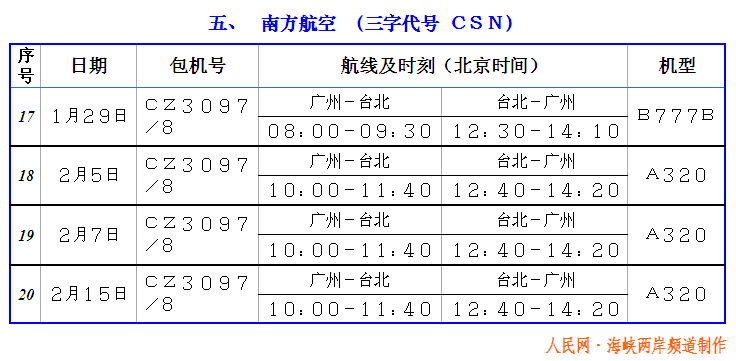 2005年臺商春節包機航班