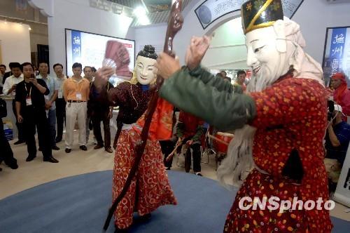 10月29日,殷商時期的閩西北原始儺舞亮相廈門文博會,這種民間舞蹈古樸神秘、粗獷奔放,被人類學、歷史學及藝術學視為活化石。當日,第二屆海峽兩岸(廈門)文化產業博覽交易會在廈門開幕。 中新社發 王東明 攝