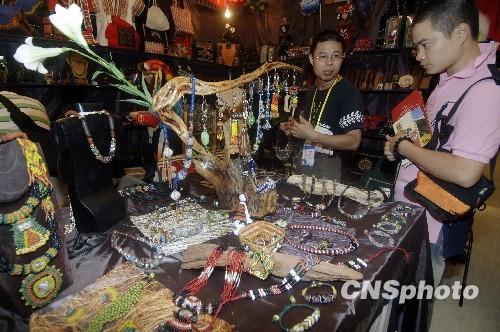 10月29日,臺灣少數民族飾品在廈門文博會上受歡迎。當日,第二屆海峽兩岸(廈門)文化產業博覽交易會在廈門開幕。 中新社發 王東明 攝