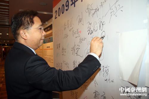 2009年兩岸互聯(lián)網(wǎng)發(fā)展論壇今天在北京開幕,圖為參加論壇的嘉賓在簽名墻上簽名。(中國臺灣網(wǎng) 邵磌 攝)