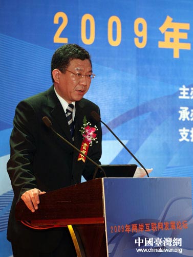 2009年兩岸互聯(lián)網(wǎng)發(fā)展論壇7月7日上午9時(shí)在北京開幕,圖為臺(tái)灣旺旺中時(shí)媒體集團(tuán)工商時(shí)報(bào)社長王嶠奇在開幕式上致辭。(中國臺(tái)灣網(wǎng) 鐘寶華 攝)