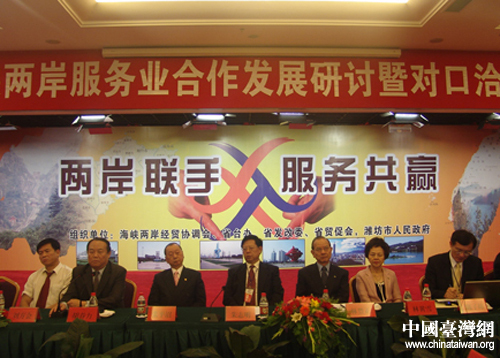 中國國民黨副主席林豐正、山東省發(fā)改委副主任、省服務(wù)業(yè)辦公室主任朱志明等先后在會上致辭。國家發(fā)改委宏觀經(jīng)濟與產(chǎn)業(yè)經(jīng)濟研究所所長胡春力、山東省貿(mào)促會、山東國際商會會長劉方會、臺灣商會總會理事長張平沼以及山東省各市有關(guān)部門、企業(yè)負責(zé)人、臺灣工商界人士共360余人與會。