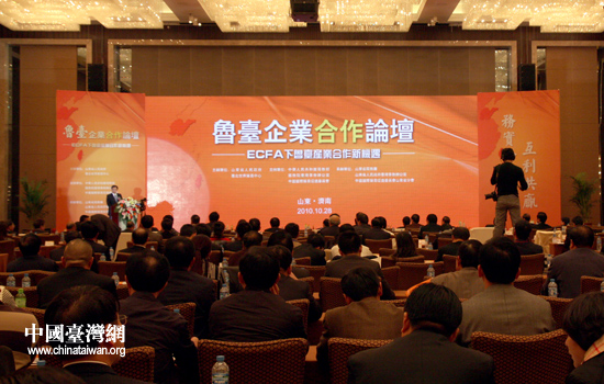 魯臺企業(yè)合作論壇是魯臺經(jīng)貿(mào)文化交流周暨2010山東(臺灣)名品博覽會活動之一,旨在搭建魯臺經(jīng)貿(mào)交流合作的新平臺,推動兩地在高新技術、現(xiàn)代服務業(yè)、現(xiàn)代農(nóng)業(yè)、旅游等領域的交流合作。(記者 張弛)