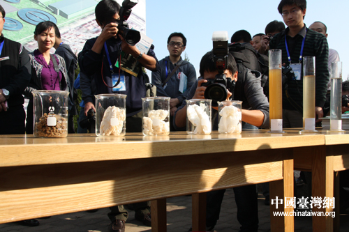 亞太森博漿紙有限公司向記者展示木頭變成紙張的過程。(中國臺灣網 劉海偉攝)