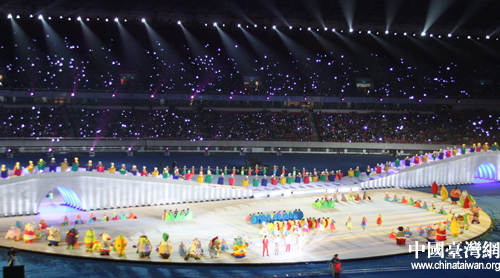 4月28日晚,第六屆中國國際動漫節在杭州黃龍體育場舉行開幕式文藝晚會,場面規模超越往屆。場中舞美設計按照西湖白堤的比例原樣移植現場,讓觀者直呼場面超宏大。(中國臺灣網 李桂英 攝)