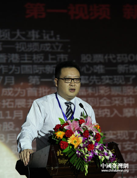 第一視頻集團副總裁、彩票事業部行政總裁李曉華做主題演講:移動娛樂與生活服務的結合。(中國臺灣網 發)