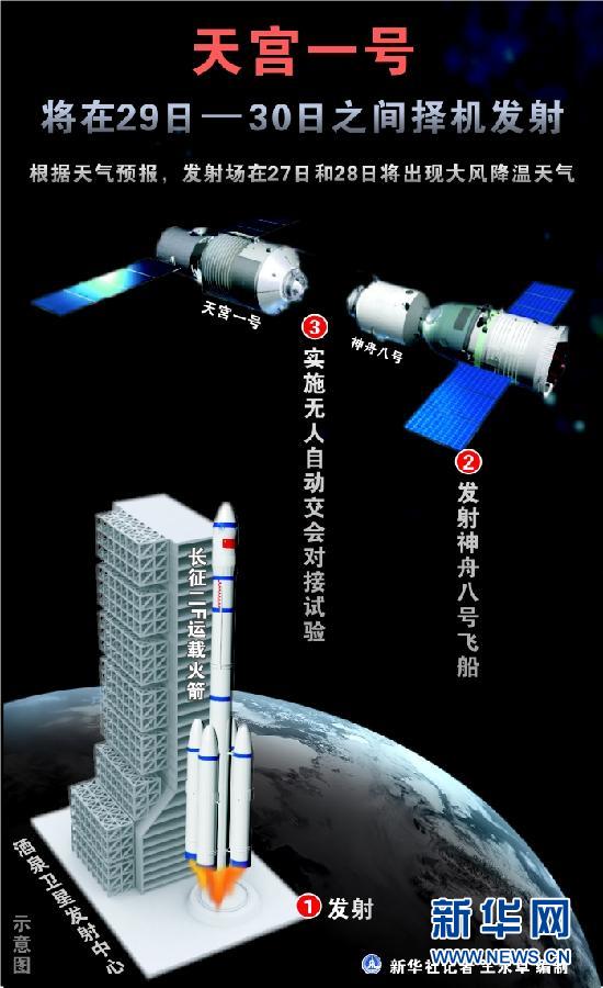 圖表:天宮一號將在29日—30日之間擇機發射 新華社記者 王永卓 編制